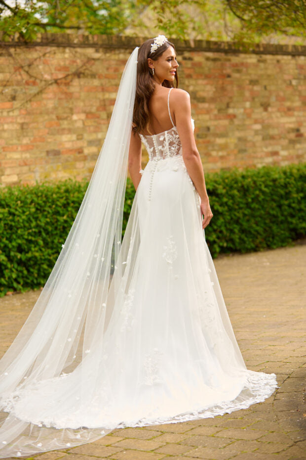 VELIKA C622B-Chiffon Flower and Pearl Veil - £335.00