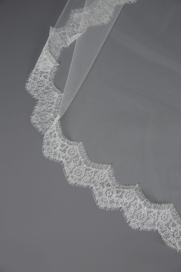A stunning veil made from our Italian tulle, finished beautifully along the edge with eyelash lace, making for a delicate addition to your bridal look.