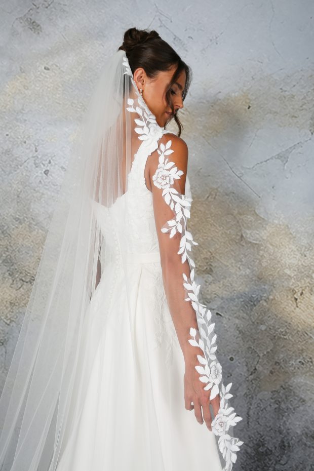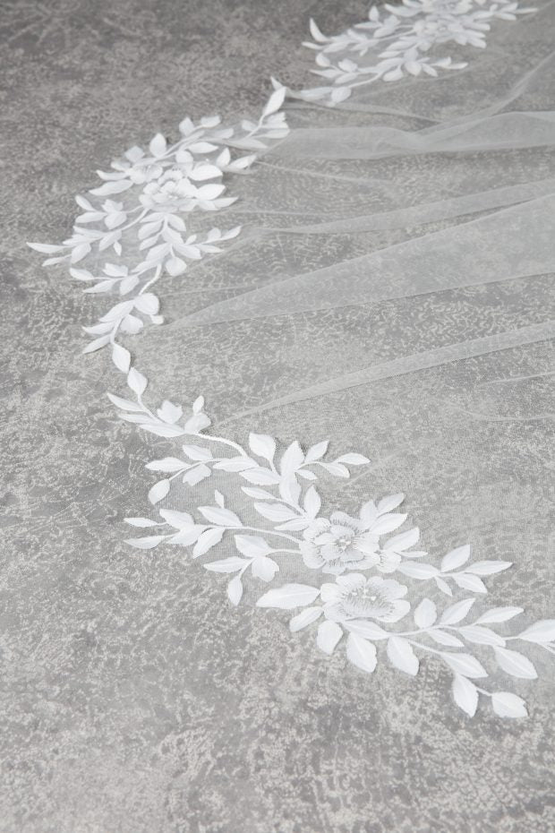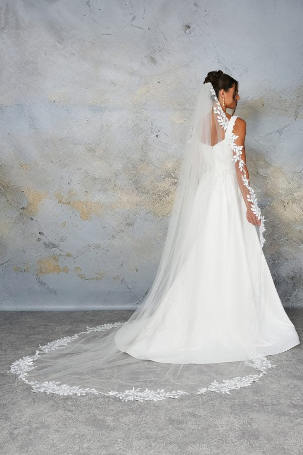VOW C671B - Botanical Matte Lace Edge Veil